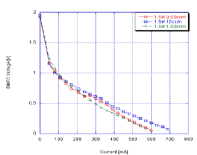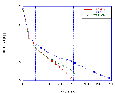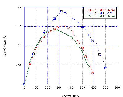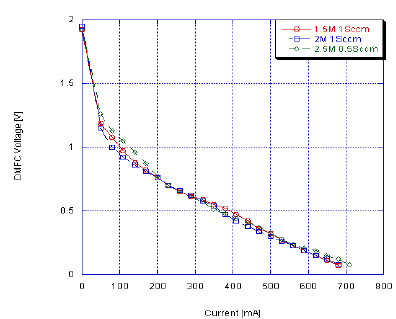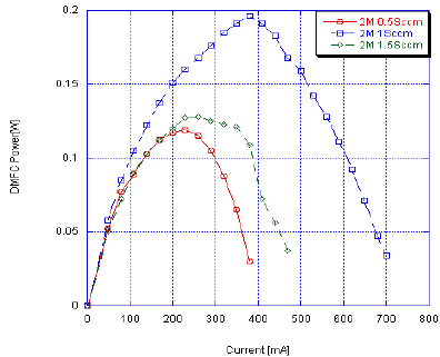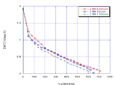 [그림 8] 메탄올 2.5M 일 때 연료 공급 유량에 따른 특성