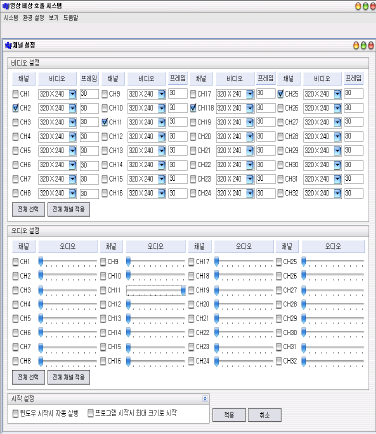[그림 5] DVR 인터페이스 블록 다이어그램 4. 시스템 구현 결과 그림 6은 영상 비상 호출 시스템의 중앙 시스템의 대 기 화면이다. 대기 화면 중 영상 호출 단말기의 Call이 들어오면 그 림 6과 같이 Call이 들어온 위치의 상황을 보여주며, 보여 진 영상 부분을 마우스로 클릭하면 그림 7과 같은 대화창 이 팝업창으로 열리게 된다. 대화창에는 영상의 밝기, 대 비, 색상, 채도, 정밀도, 음량 등을 조절하는 바(Bar)가 있 고 통화 버튼과 종료 버튼으로 이루어져 있으며 그림 8과 같이 32개의 채널로 들어오는 영상 및 음성을 채널설정