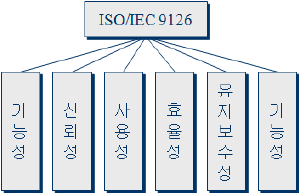 외부 품질(External Quality), 사용 품질 (Quality in use) 측정을 위한 특성들을 규정하며 각 특성별 품질을 측정 하기 위해 고려해야 할 세부 사항으로서 부특성을 제시 한다. 내부 품질은 소프트웨어의 프로그램 원시 코드 등이 얼마나 올바르게 작성이 되어 있는가는 것을 뜻하며, 외 부 품질은 소프트웨어가 데이터를 올바르게 처리하는 등 의 성능을 의미한다. 사용 품질은 소프트웨어를 사용함에 있어 얼마나 편리한가 등을 나타내며 각 품질 별 특성은 품질을 측정하는데 필요한 측정지표를 정의한다. 그리고 부특성은 각 특성 별 측정지표를 보다 세분화 한다. ISO/IEC 9126은 소프트웨어 제품에 대한 품질 요구사항 을 기술하는 데 사용할 수 있으며, 개발 중에 있거나 또 는 개발 완료된 소프트웨어의 품질을 측정하는 데 사용 할 수 있는 척도들을 정의하고 있다. 본 연구에서 u-Health 소프트웨어의 품질을 평가하고 인증하는 방식에서는 기본적으로 외부 품질 측정을 통해 인증 유무를 결정한다. 이러한 외부 품질을 측정하는데 실제로 도움이 되는 측정지표를 ISO/IEC 9126-2 문서에 서 명시하고 있다. 다음의 그림 3은 6가지 특성(기능성, 신뢰성, 사용성, 효율성, 유지보수성, 이식성)이 있다.