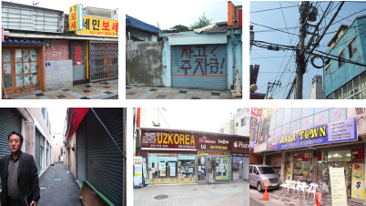 교차하고 있고 대중교통에 대한 접근성이 우수하고 해반 천과 호계천을 연결하는 동서가로축의 중심에 위치하고 있다. 이 가로는 재래시장 뿐만 아니라 외국인노동자들을 위한 시설과 점포들이 다수 입점하고 있다. 이런 이유로 김해와 주변 도시의 외국인 근로자들이 많이 모이는 거 리가 되면서 이국적인 풍경을 형성하고 있다. 국내에서 이주 노동자를 받아들이기 시작한 것이 근래의 일인 만 큼 자연발생적으로 형성되기 시작한 이들의 상업 활동이 나 특정한 공간에 밀집하는 현상이 아직은 국내에서는 새로운 현상이라 할 수 있다.