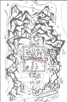 [Fig. 2] Gimhae, Gojong the 3rd year [4] 2.2 대상지 내부 현황 연구대상지는 일반적으로 6∼8m의 폭을 가지는 비교 적 협소한 도로로 구성되어있고 대부분 보·차도 구분이 없으며 불법주차와 노점상, 불법적치물들, 양방향 차량의 통행으로 인해 보행환경에 불편을 초래하고 있다. 주변의 건물은 1∼6층의 분포를 보이고 있으나 2∼3층이 건물의 주류를 이루고 있다. 수로왕릉의 서편에 위치 한 구간은 가로가 협소하며 건축물 노후도가 가장 높은 지역이다. 입면불량 및 불법노후건축물이 다수를 차지하고 있으며 주로 단층 슬레이트 건물로 구성되어 있다. 이 부분은 협 소한 공간에도 불구하고 보차도 분리로 인해 시각적으로 더욱 협소하게 느껴지고 영업을 하지 않는 상가가 많아 다소 낙후된 분위기 연출하고 있다.