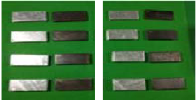 강재의 부식시험을 위해 ‘한국산업규격-염수 분무 시 험 방법(KS D 9502)’에 따라 Fig. 3과 같이 기존 일반구 조용 압연강재와 고강도 신소재 강재시편을 제작하였다 [11]. 추가로 각각의 강재에 무도금 상태와 용융 아연도 금 상태로 1wt%의 염화칼슘용액에서 부식정도를 조사 하였다. 그리고 도금의 두께별, 용액 농도별에 따라 (1∼ 5wt %까지) 염화칼슘 용액에 침수시켜 부식의 변화를 관찰하였다.