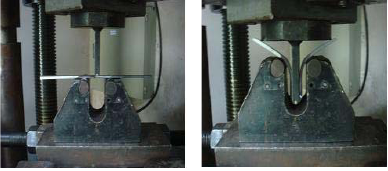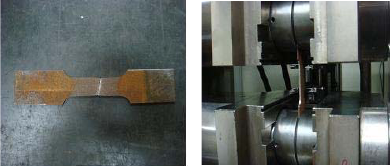 (c) (d) [Fig. 4] Mechanical Load Test of High Strength Steel (a) Sample figure (b) Tensile test (c) Bending test(Before) (d) Bending test(After)