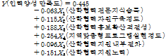 이들 변수 중 ‘산학협력 전문지식습득’과 ‘지역맞춤형 프로그램실현정도’ 요인이 통계적으로 유의미하게 나타났고(P<0.05), 유의미한 요인의 표준회귀계수는 ‘지역맞춤형 프로그램실현정도’가 0.277로 가장 높게 나타났고, ‘산학협력 전문지식습득’ 0.171로 나타나 영향력 변수임을 알 수 있다.